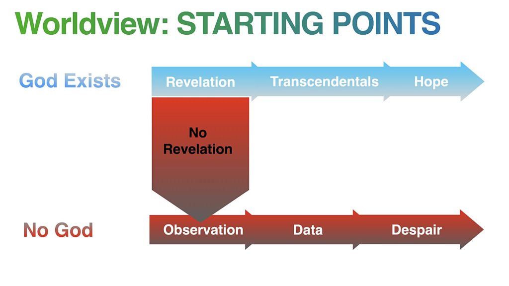 If we begin with at least the possibility that God exists, then it opens the doors for revelation – our Creator speaking to us – which implies the existence of transcendentals – truths that stand above creation – and the possibility of hope.