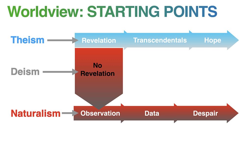 These three options are the starting point of three major worldviews: Biblical Theism, Deism, and Naturalism.